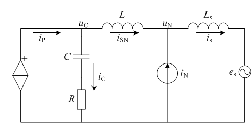 側分流電感;LdcLdc為PWM單元直流側電感;LSLS為連接電感;L、C、R分別為PWM單元濾波電感和電容以及無源阻尼電阻。